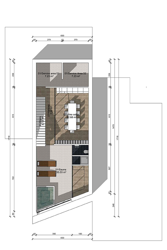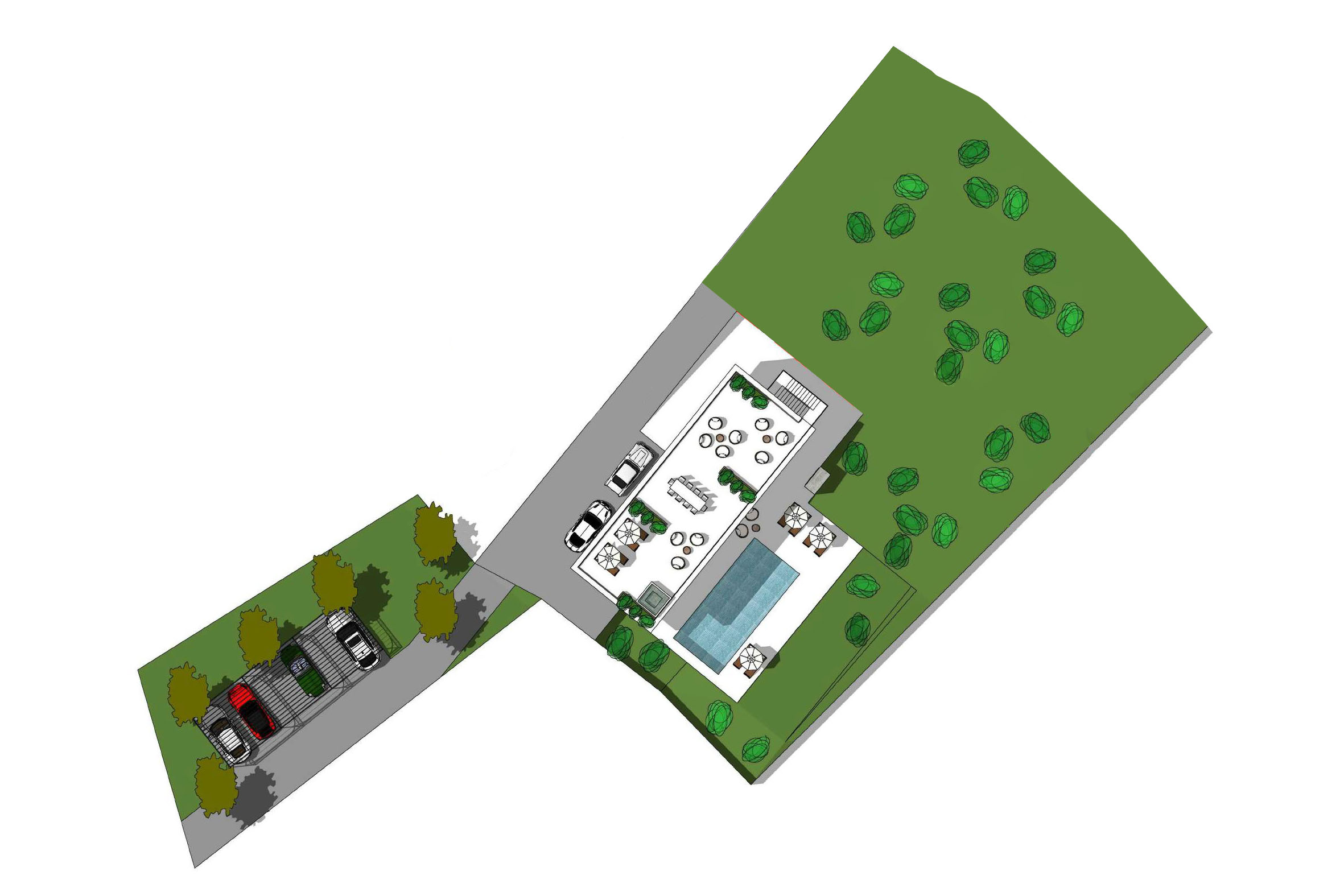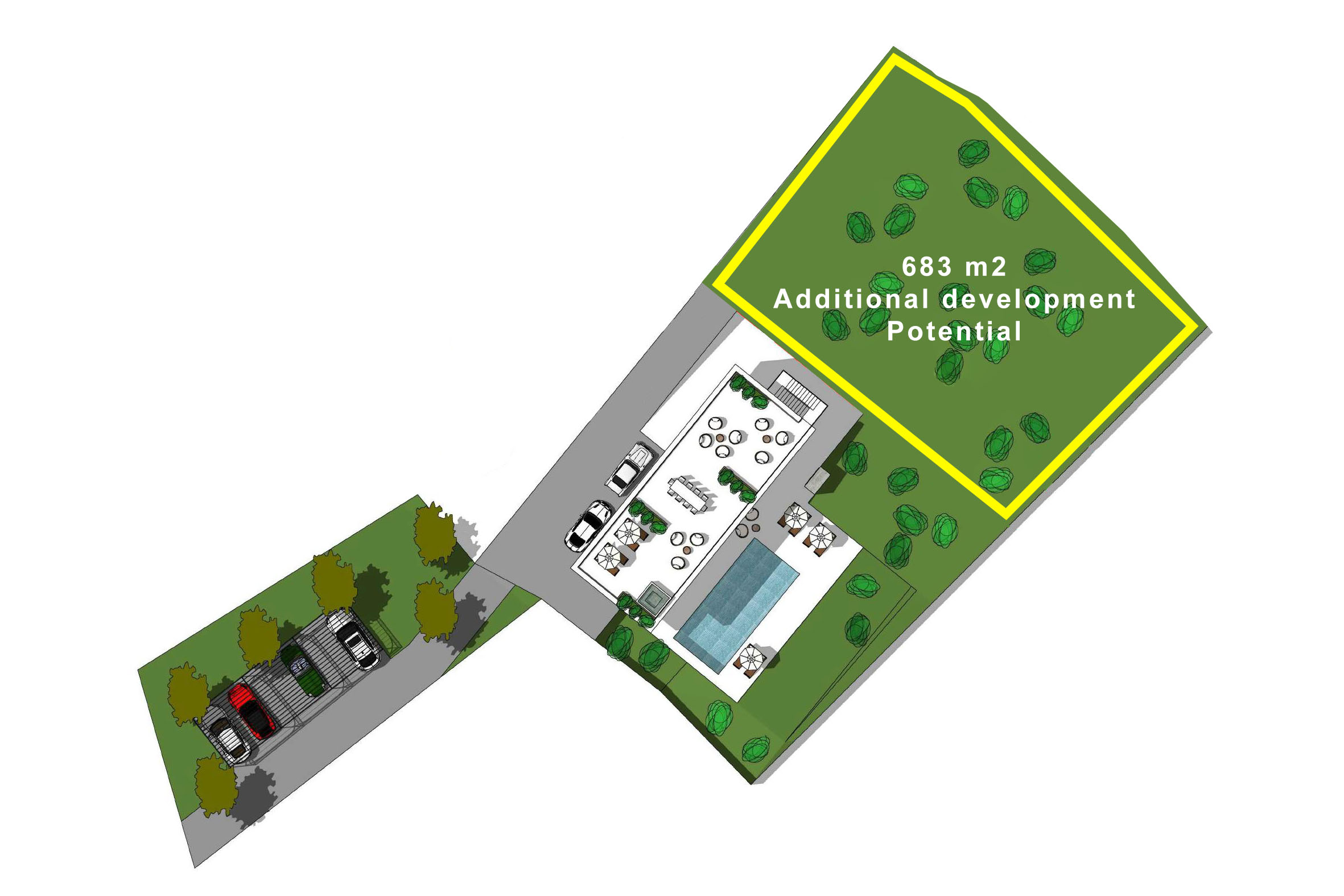 For investors who prefer not to develop the location further with additional capacities but rather finalize the project as a luxurious entity with all the features and amenities of high quality, the rear part of the land allows for the construction of a spacious garage and storage area. With appropriate landscaping featuring Mediterranean plants, this would position the project in the highest category of this type of investment.