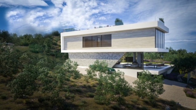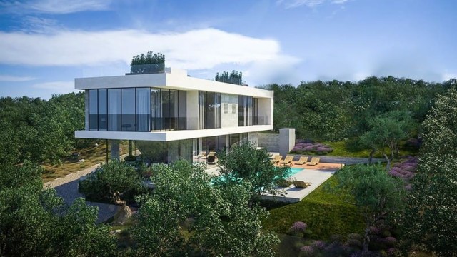 The location of the future property has been carefully selected, just a few hundred meters from the sea (beach), surrounded by olive groves and pine forests, with a wooded hill at the back, providing protection from northern winds.